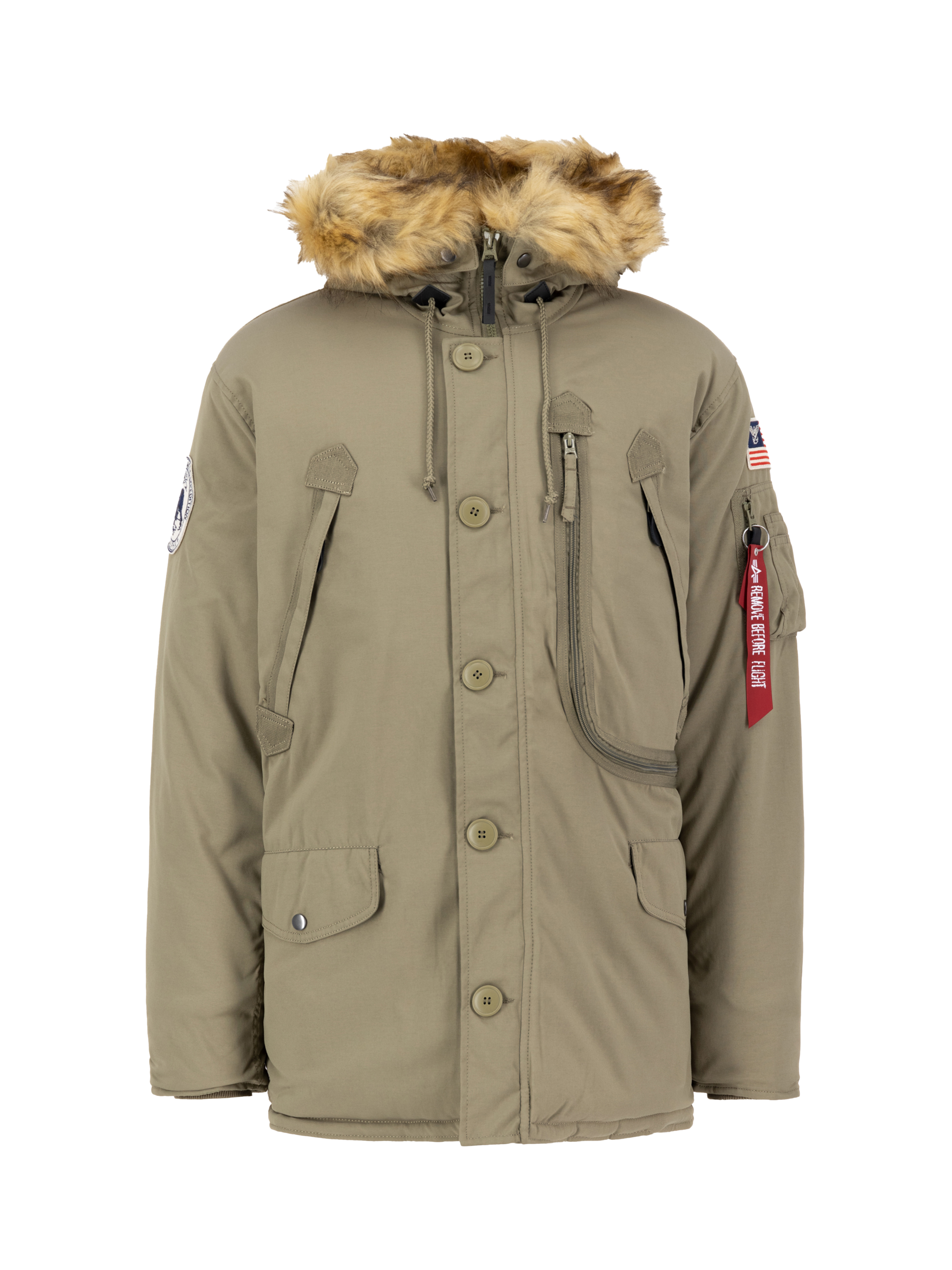 Ein besonderes Highlight sind die Arctic Expedition Patches auf den Ärmeln und der Kapuze. Diese geben der Jacke einen authentischen Look im Stil von echten Expeditionsjacken. Auch das Alpha Logo Stick auf der Windklappe fügt sich nahtlos in das Design ein.